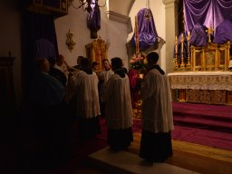 Świece ołtarzowe są gaszone podczas gdy chór śpiewa kantyk Benedictus