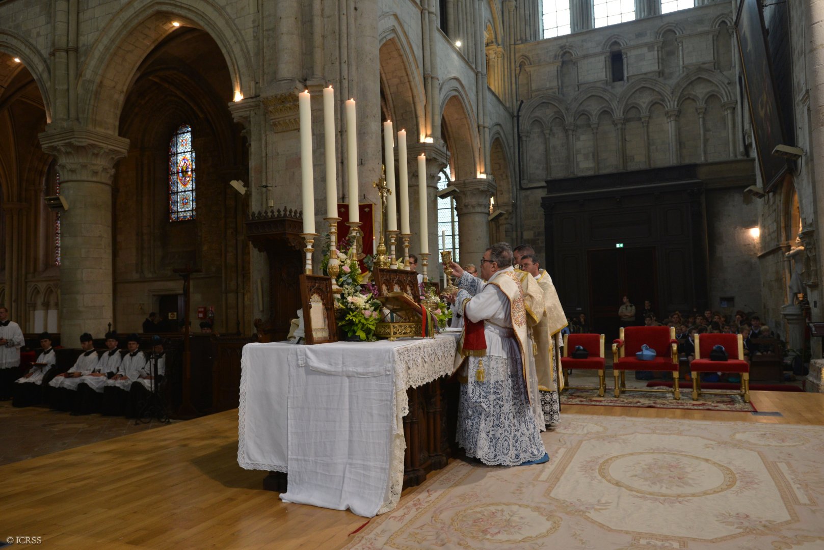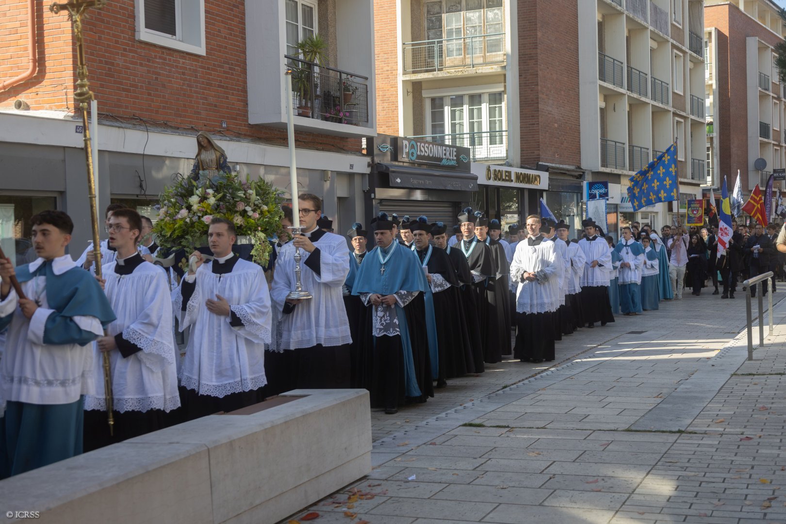 W ramach pielgrzymki Ksiądz Prałat Gilles Wach, Przełożony Generalny, odprawił uroczystą Mszę Świętą w katedrze w Lisieux i wygłosił kazanie. Po liturgii pielgrzymi wyruszyli w procesji od katedry, przez Lisieux, aż do krypty bazyliki św. Teresy od Dzieciątka Jezus, gdzie odbyła się adoracja Najświętszego Sakramentu.